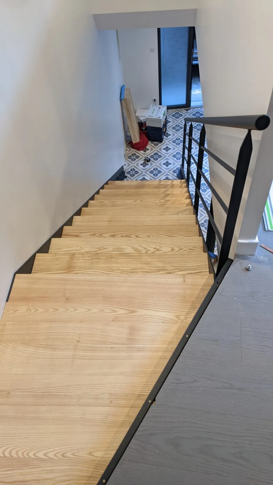 Escalier bois-métal vu d'en haut