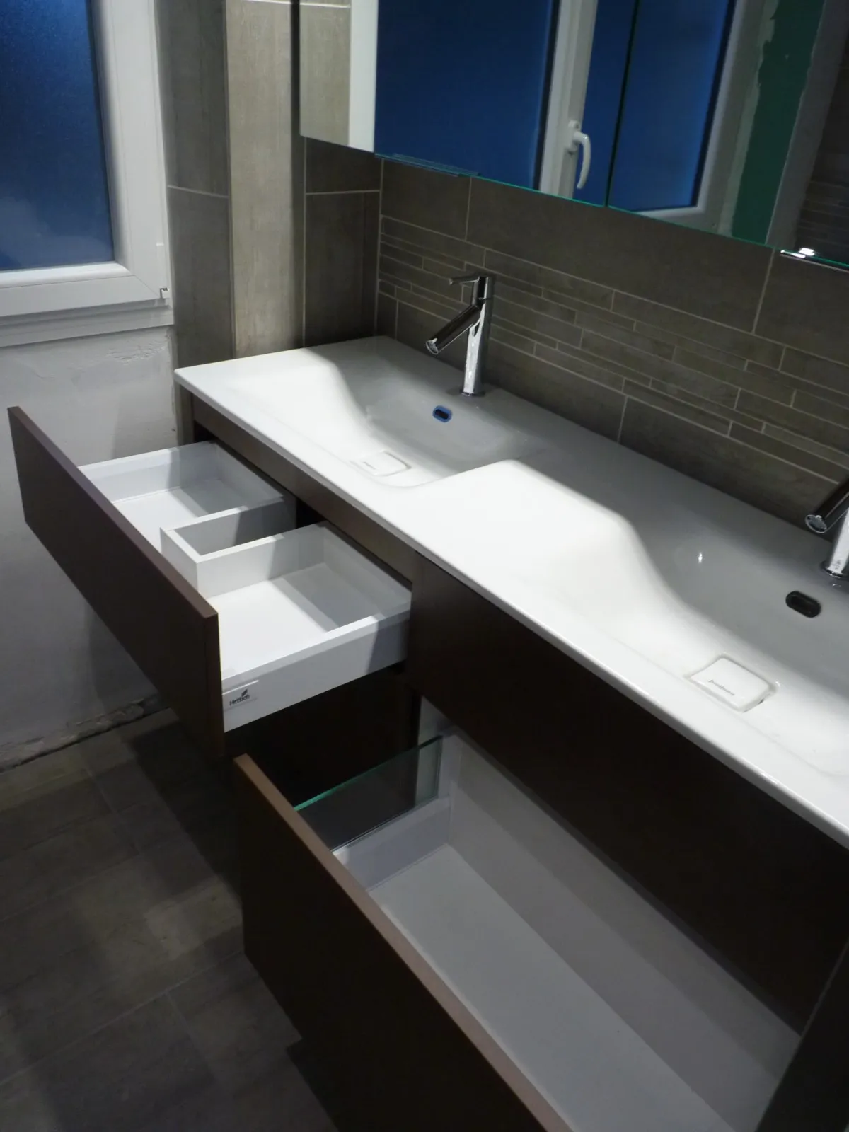 Meuble de salle de bain avec plan vasque céramique